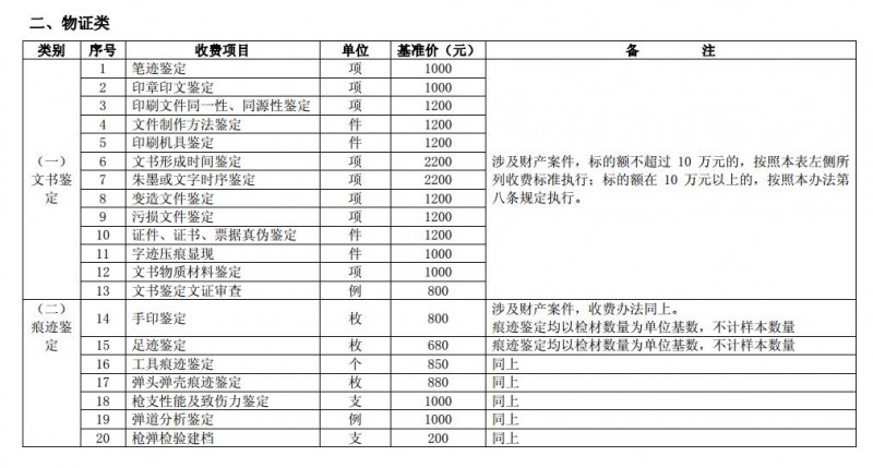 本條第一款所稱涉及財產(chǎn)案件的司法鑒定收費,只適用于司法鑒定中物證類的文書鑒定和痕跡鑒定中的手印鑒定,不適用于其他鑒定。