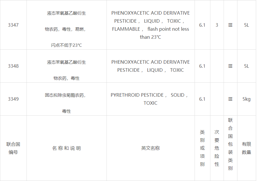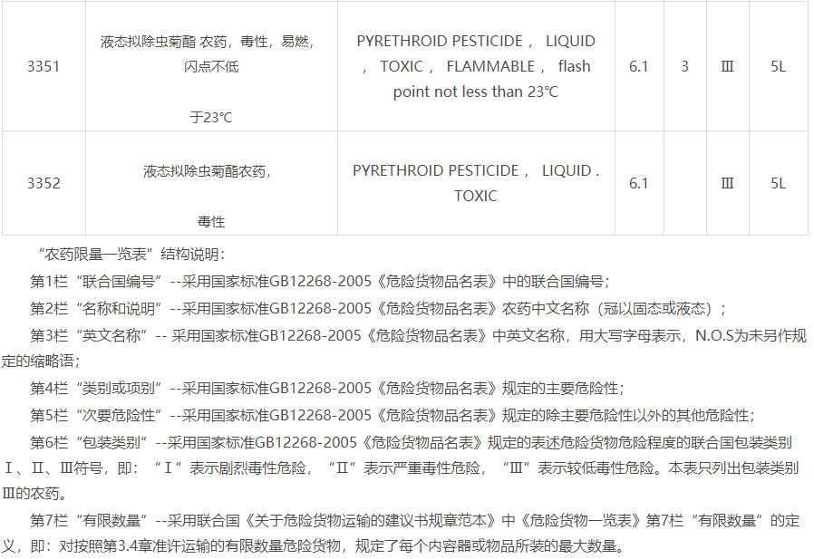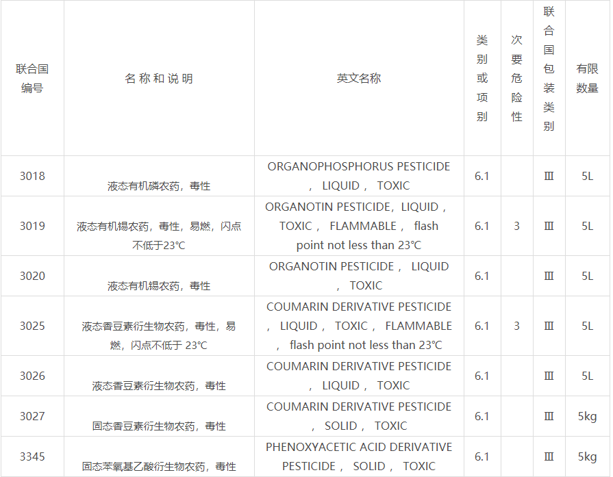 三、 對包裝類別Ⅰ、Ⅱ的農(nóng)藥產(chǎn)品(含農(nóng)藥登記為劇毒、高毒產(chǎn)品)以及不符合限量標(biāo)準(zhǔn)及包裝要求的包裝類別Ⅲ的農(nóng)藥產(chǎn)品,仍按危險貨物管理。