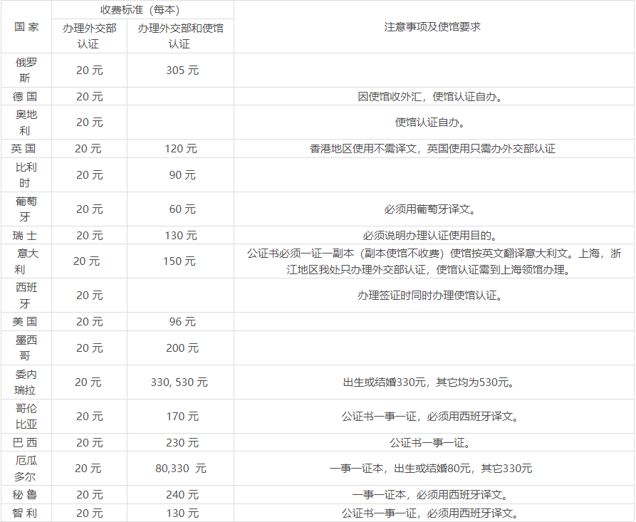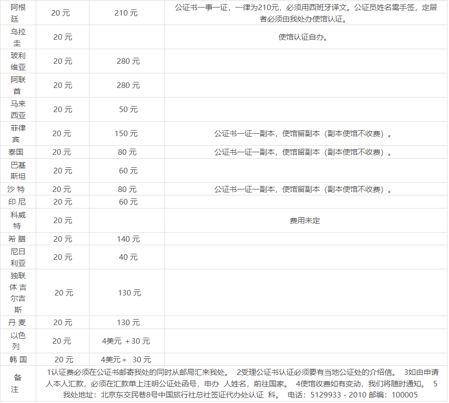 另,由于各國駐華使館對(duì)公證書認(rèn)證費(fèi)標(biāo)準(zhǔn)經(jīng)常做出更動(dòng),經(jīng)與中國旅行社總社簽證代辦處協(xié)商,今后各公證處可直接與該處電話聯(lián)系,詢問有關(guān)問題。
