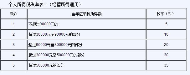 “(二)經(jīng)營所得,適用百分之五至百分之三十五的超額累進稅率(稅率表附后);