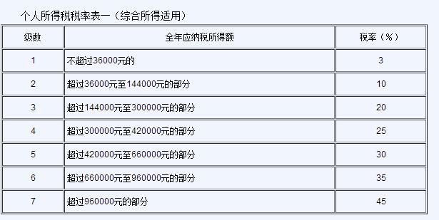 (一)綜合所得,適用百分之三至百分之四十五的超額累進(jìn)稅率(稅率表附后);