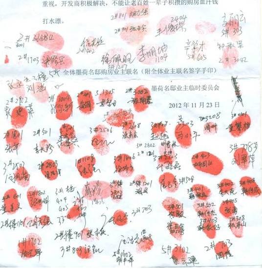 4. 2012年11月開始,墨荷名邸小區(qū)全面停工,876戶業(yè)主無家可歸,心如死灰,茫然無助,更有甚者,家破人亡,只能寄希望與黨和人民政府。懇請黨和人民政府為民做主,給876戶無助的家庭一個安身立家之地。